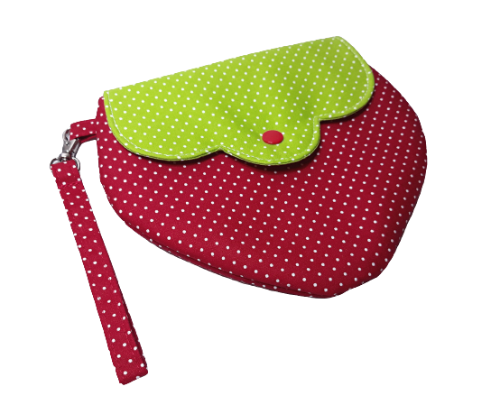 Χειροποίητο τσαντάκι χειρός φράουλα, υφασμάτινο βαμβακερό με εσωτερική επένδυση
