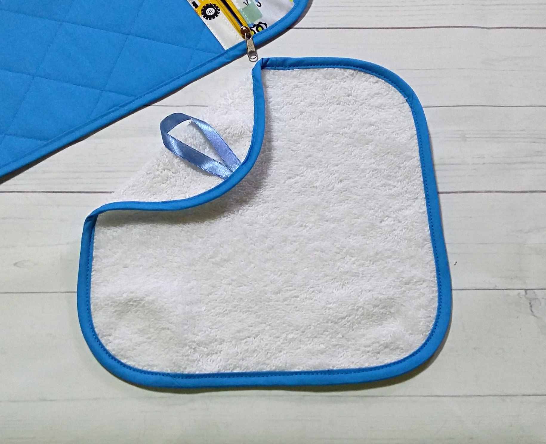 Παιδικό σουπλά φαγητού για νηπιαγωγείο, παιδικό σταθμό,σχολείο , πικ νικ ή για το σπίτι . Φτιαγμένο από βαμβακερά υφάσματα . Περιλαμβάνει θήκη με φερμουάρ για χαρτοπετσέτα και κουταλάκι ή πιρουνάκι. Πλένεται στους 30 βαθμούς και σιδερώνεται. Διπλώνεται και κλείνει με κουμπάκι. Συνοδεύεται με μικρι πετσετούλα χεριών 24*24 εκ. περιπου.