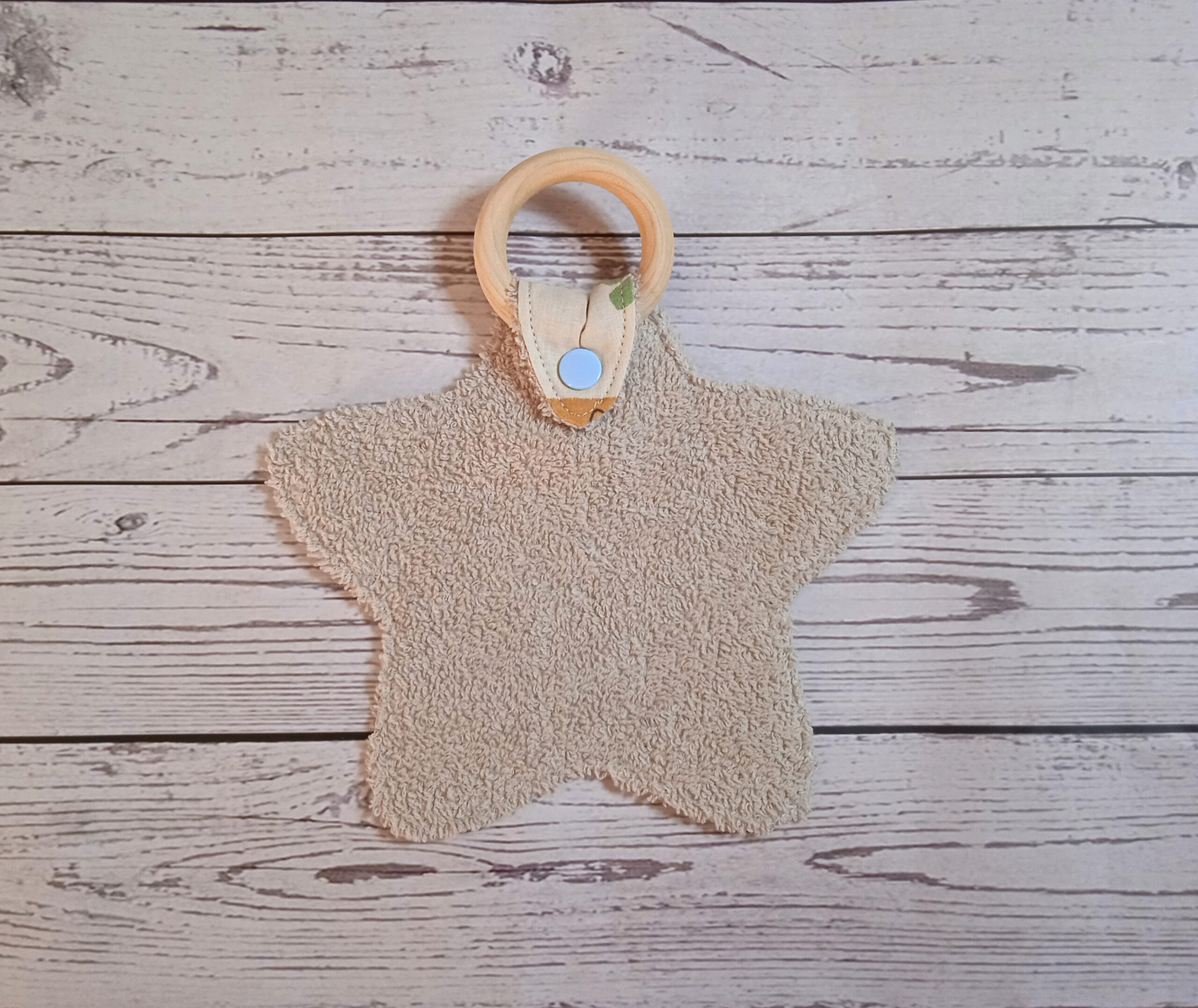 Το υφασμάτινο τμήμα είναι στη μια πλευρά 100% βαμβακερό και στην άλλη πλευρά βαμβακερή πετσέτα. Οι διαφορετικές υφές διεγείρουν τις αισθήσεις του μωρού και το απασχολούν.